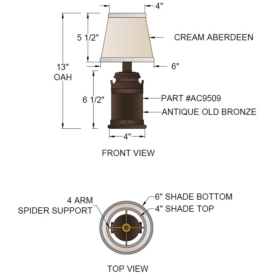 Mini Lamp Finish: Antique Old Bronze Height: 13″ Fabric: Cream Aberdeen Shade Size: 4″ x 6″ x 5 1/2″ Switch: On/Off Wattage: 40 W Max