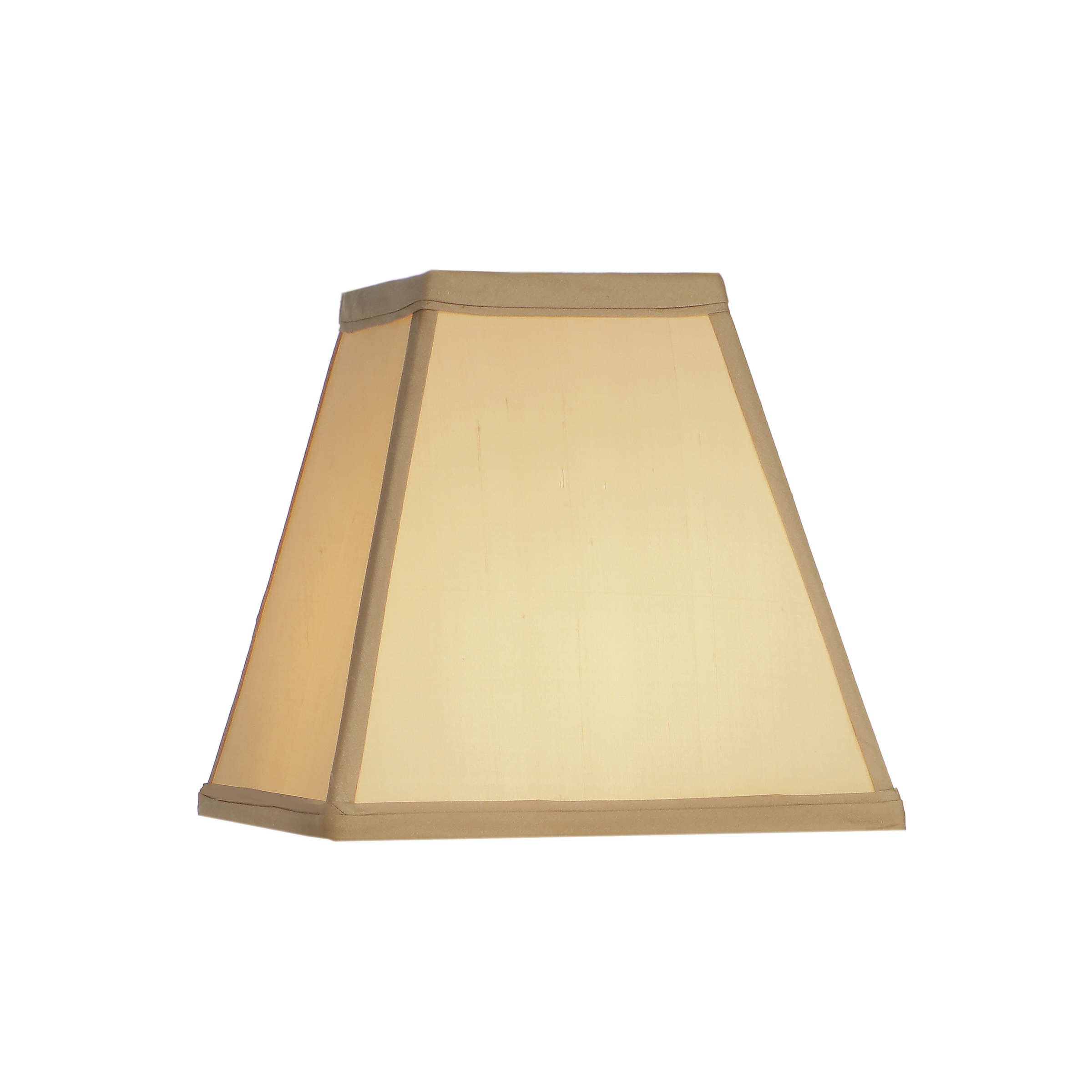 Hardback Tapered Square Shade Fabric: Tan Silk Shantung Size: 4 sq x 8 sq x 7 1/2 Top Ring Finish: Brass