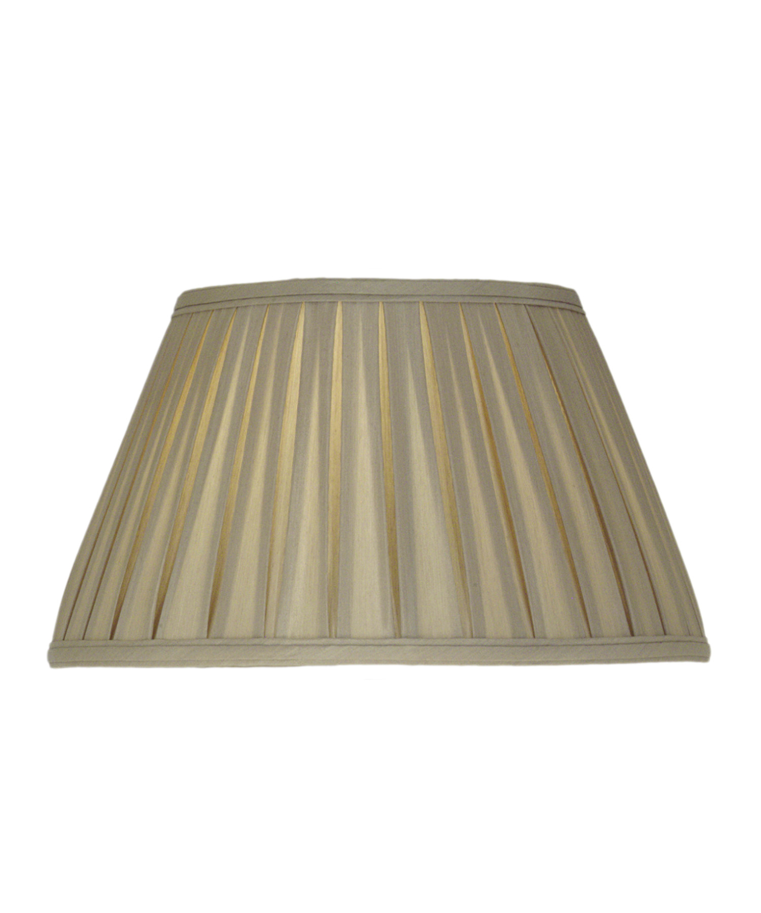 Softback Empire Fabric: Croissant Silksheen Box Pleat Size: 9” x 15” x 9” Top Ring Finish: Brass