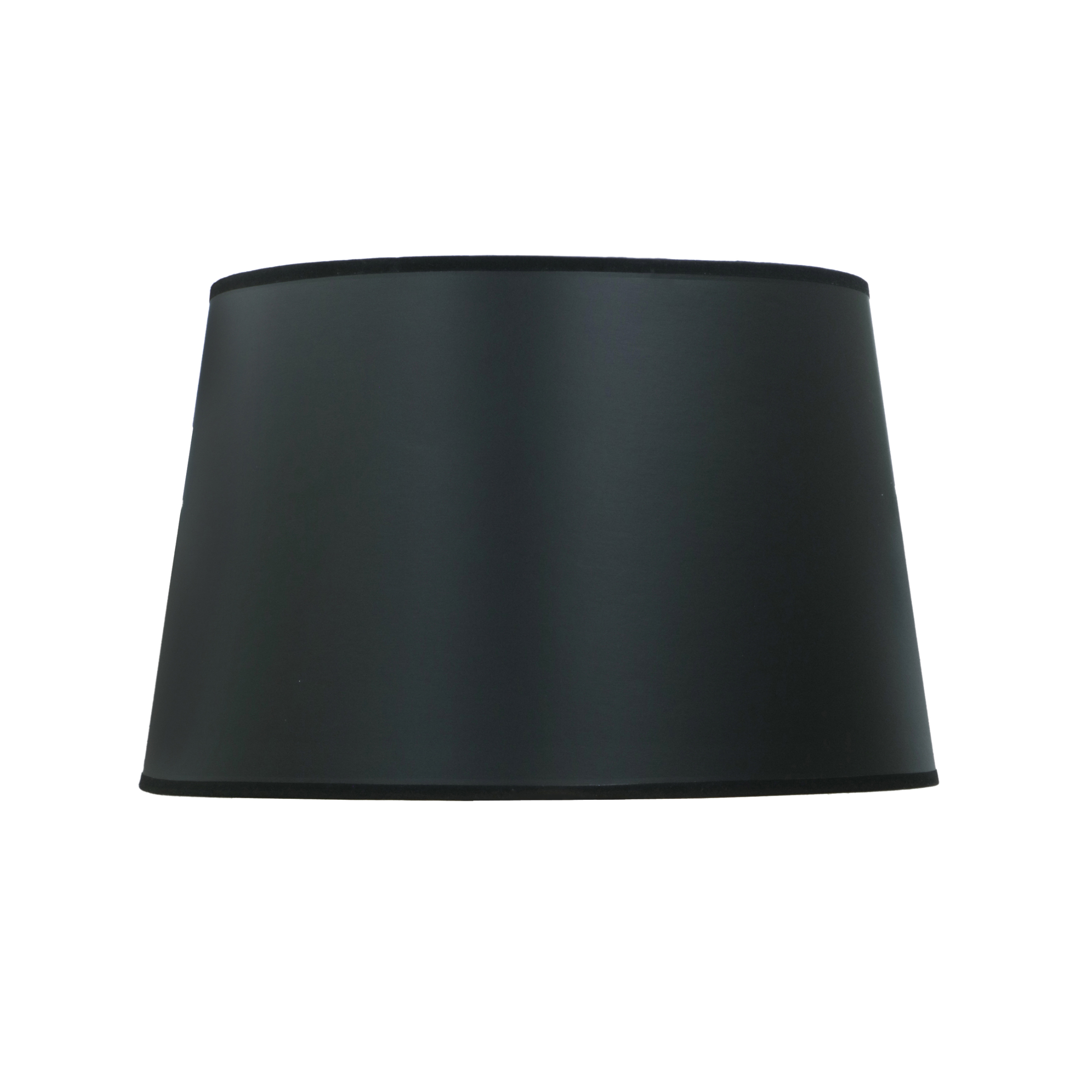 Hardback English Barrel Shade Fabric: Black Opaque/Gold Size: 13” x 16” x10” Top Ring Finish: Brass