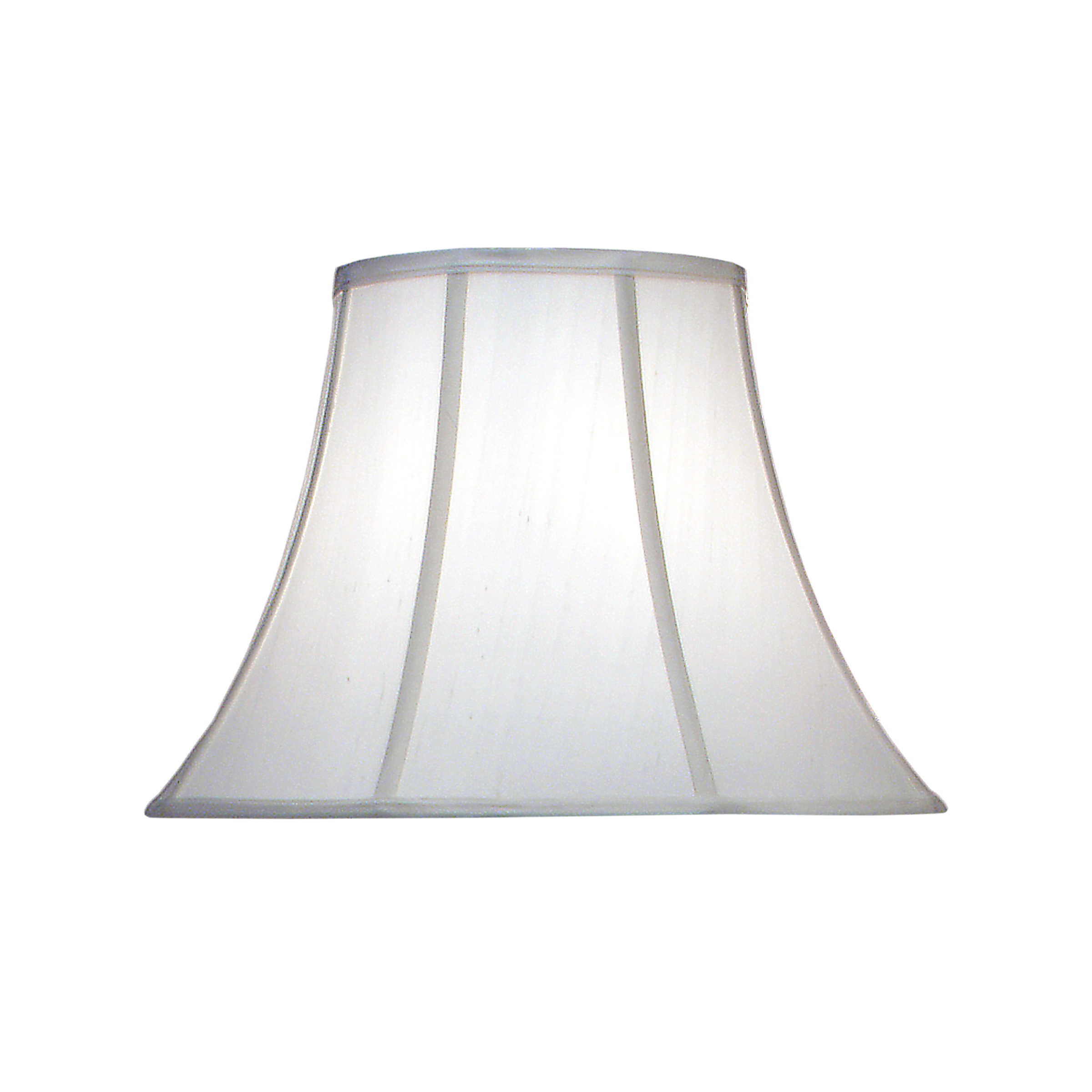 Softback Bell Fabric: Off White Silk Shantung Size: 9 x 18.x 13 Top Ring Finish: Nickel